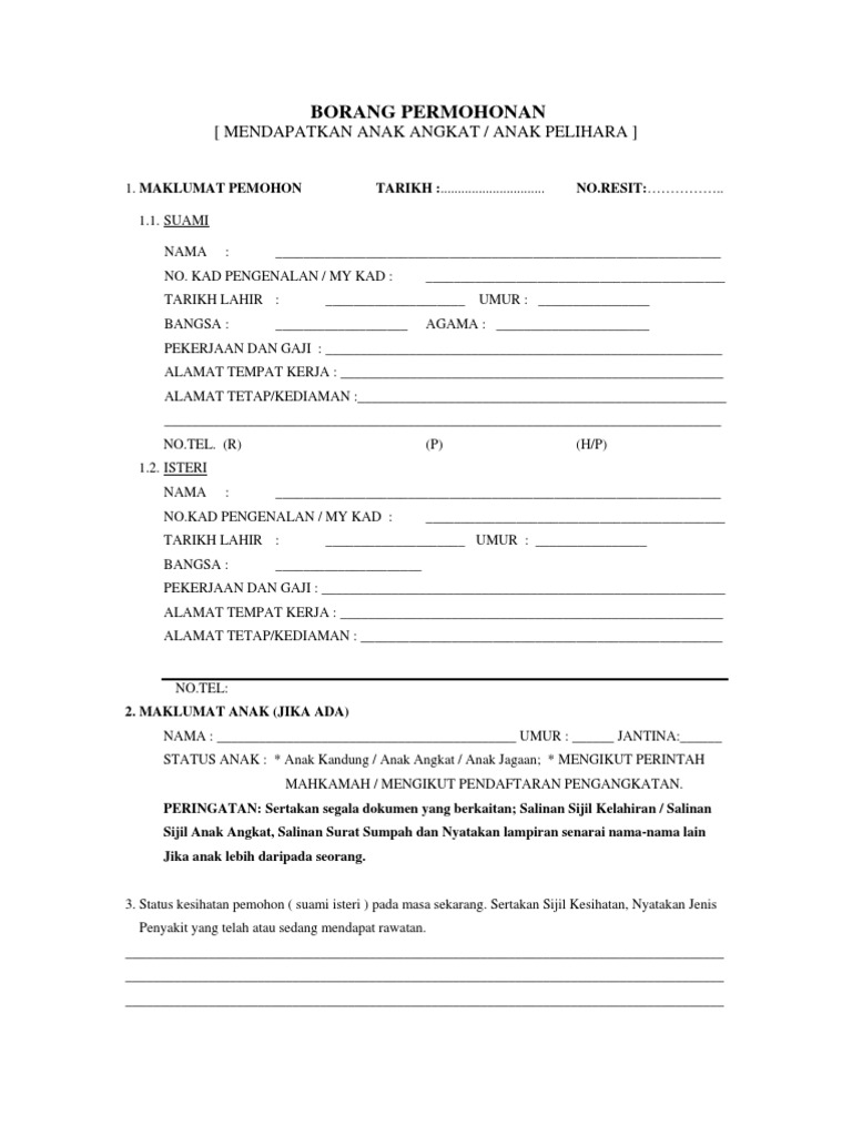 Borang Permohonan Ambil Anak Angkat Pdf